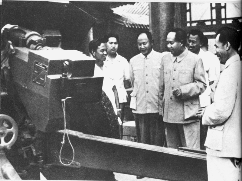 1958年6月6日毛澤東主席在國防工業(yè)匯報展覽會兵器館仔細觀看54式122毫米榴彈炮