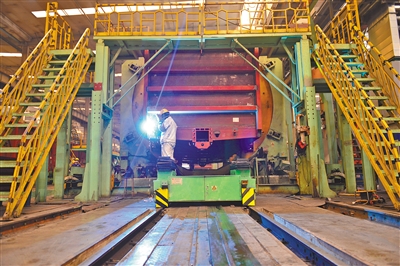 中國兵器工業(yè)集團(tuán)一機(jī)集團(tuán)北方創(chuàng)業(yè)公司生產(chǎn)線開足馬力生產(chǎn)鐵路車輛產(chǎn)品。日前,為圓滿完成1200臺C70E(H)型通用敞車生產(chǎn)任務(wù),該公司不斷創(chuàng)新生產(chǎn)組織模式,新、舊兩條生產(chǎn)線全面啟動,白、夜班雙班組織生產(chǎn),有效保障生產(chǎn)進(jìn)度。(王磊 攝) |