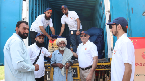 考慮到災(zāi)情期間交通不便,為了確保運(yùn)輸時(shí)效,項(xiàng)目組成立了由21人組成的運(yùn)輸保障志愿小分隊(duì)。9月6日,志愿小分隊(duì)連夜驅(qū)車400公里趕往災(zāi)區(qū),親手將救災(zāi)物品免費(fèi)發(fā)放到當(dāng)?shù)刎毨転?zāi)民眾手中,極大鼓舞了當(dāng)?shù)孛癖娍箵艉闉?zāi)的士氣?!盁o(wú)論遇到什么困難,中國(guó)總是第一個(gè)愿意幫助巴基斯坦的國(guó)家。感謝中國(guó)公司給予我們的支持與幫助,中巴友誼萬(wàn)歲!”當(dāng)?shù)鼐用窦娂姳硎靖兄x。